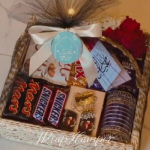Make your loved one’s day special with our Chocolate Fantasy Hamper! This delightful basket is filled with popular chocolates like Mars, Galaxy, KitKat, Snickers, Perk, Dairy Milk, Twix, and Bounty.
